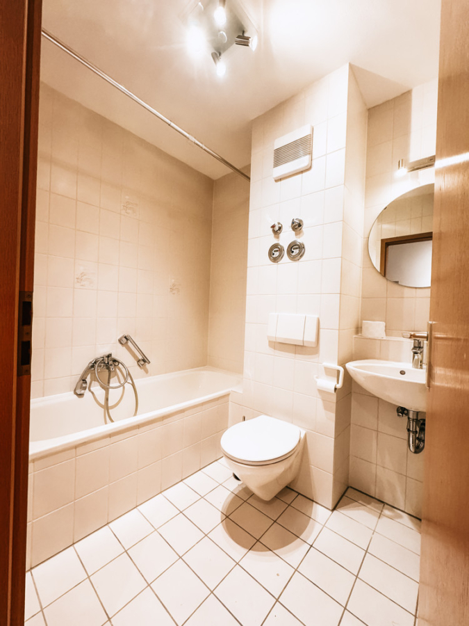 Die Wohnung ist aufgeteilt in eine kleine Diele, ein Wohnzimmer mit Zugang zu Ihrem Süd-Balkon, ein Schlafzimmer, eine Küche inklusive Einbauküche, sowie ein Badezimmer mit Badewanne und WC.