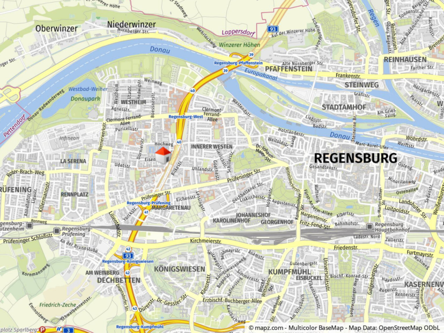 Zentralität & Mobilität: Die historische Altstadt ist in wenigen Gehminuten erreichbar, die Anbindung an den ÖPNV sowie die Autobahnen A3 und A93 ist exzellent.