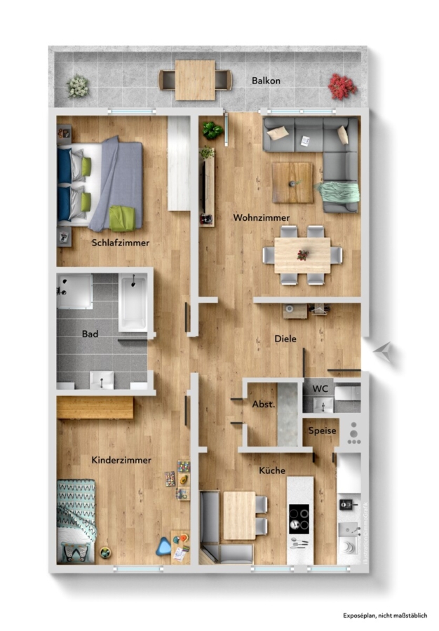 In Ihre Wohnung eintretend – ohne Aufzug sparen Sie hier das Gym – führt eine geräumige Diele Sie zu Ihren Wohnräumen. Rechter Hand öffnet sich Ihnen Ihr Wohnzimmer von welchem Sie auch auf Ihren nach Westen ausgerichteten Balkon gelangen können.