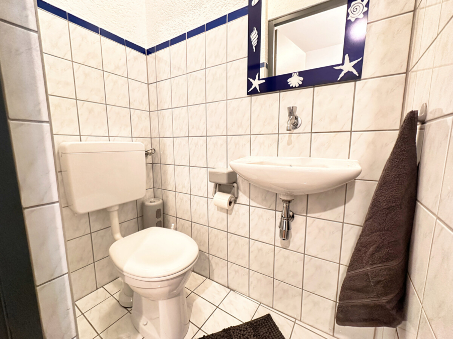 Sich in Ihrer Diele geradeaus haltend gelangen Sie zu Ihren beiden Schlafräumen und Ihrem Badezimmer – mit Wanne und Dusche. Hier befindet sich auch der Anschluss für Ihre Waschmaschine.