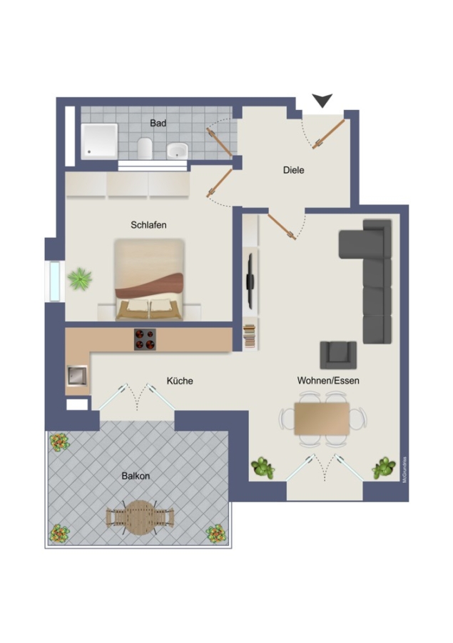 Ein weiteres Highlight ist der großzügige Balkon, der von der Küche aus begehbar ist. Er ist mit einer Markise und einer Balkontür mit Fliegengitter ausgestattet und lädt zum Verweilen und Genießen an der frischen Luft ein.