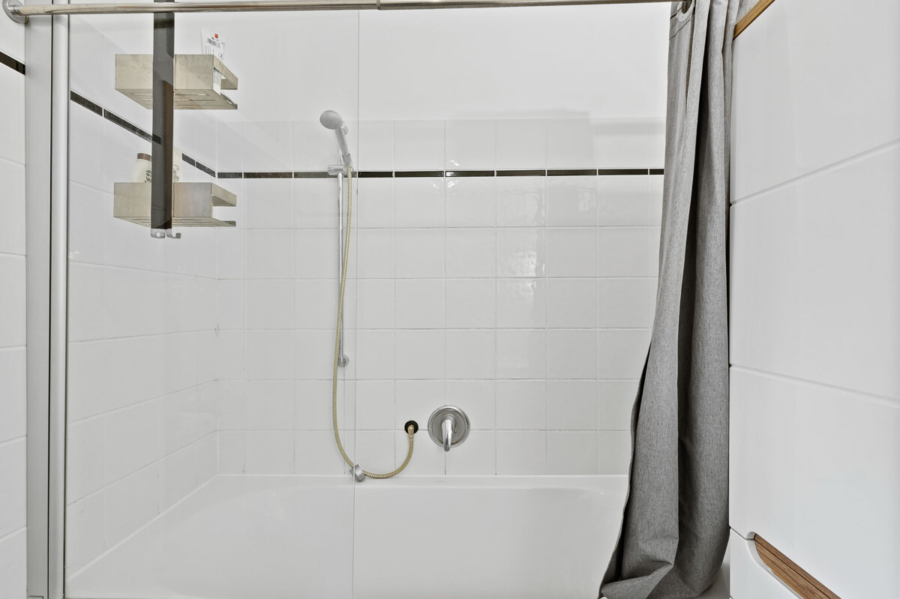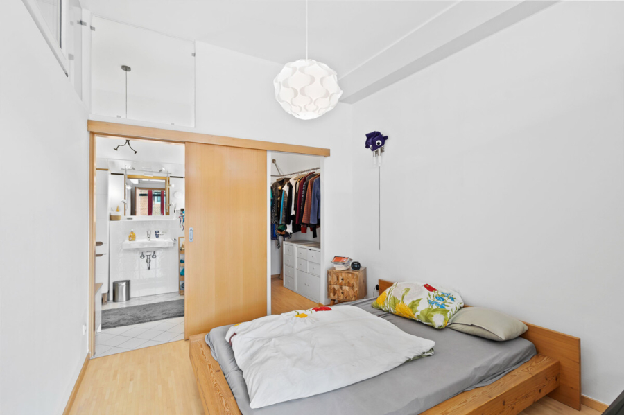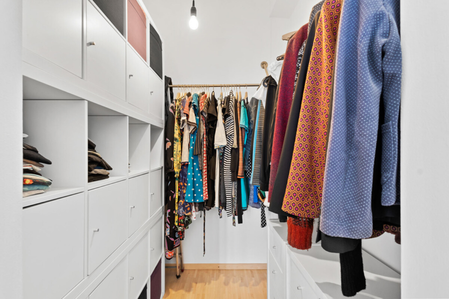 An das Schlafzimmer angrenzend ein Raum, der als begehbarer Kleiderschrank genutzt werden kann, sowie ein Badezimmer mit Badewanne.