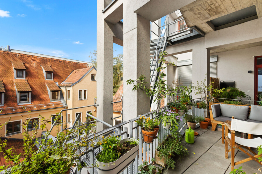 Das Highlight der Wohnung ist der großzügige Balkon mit Südwestausrichtung. Hier kannst du die Sonne bis in die Abendstunden genießen und den Blick auf den ruhigen Innenhof schweifen lassen.