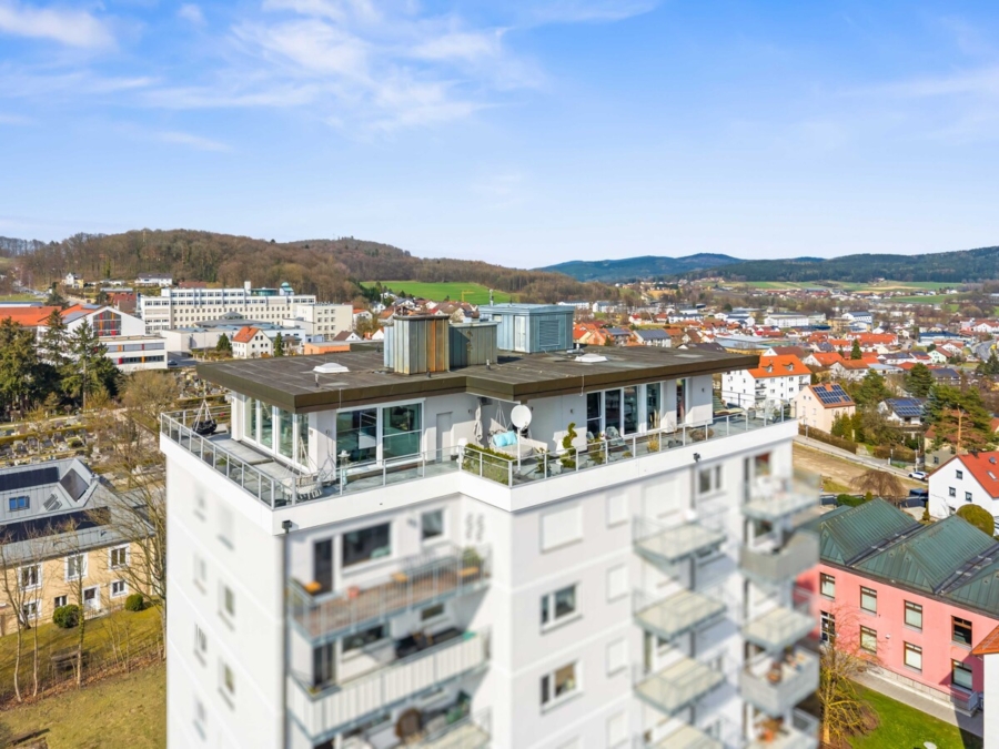 In ruhiger Wohnlage präsentiert sich dieses außergewöhnliche Penthouse als echtes Highlight für anspruchsvolle Käufer. Mit Ihrem privaten Aufzug gelangen Sie direkt in die exklusive Penthouse-Wohnung, die mit einer großzügigen Wohnfläche von ca. 204 m² beeindruckt. Hier verschmelzen modernes Design, hochwertige Ausstattungsdetails und ein unvergleichlicher Ausblick über die Dächer der Stadt bis hin in die Weiten des Bayerischen Waldes zu einem einzigartigen Wohnambiente.