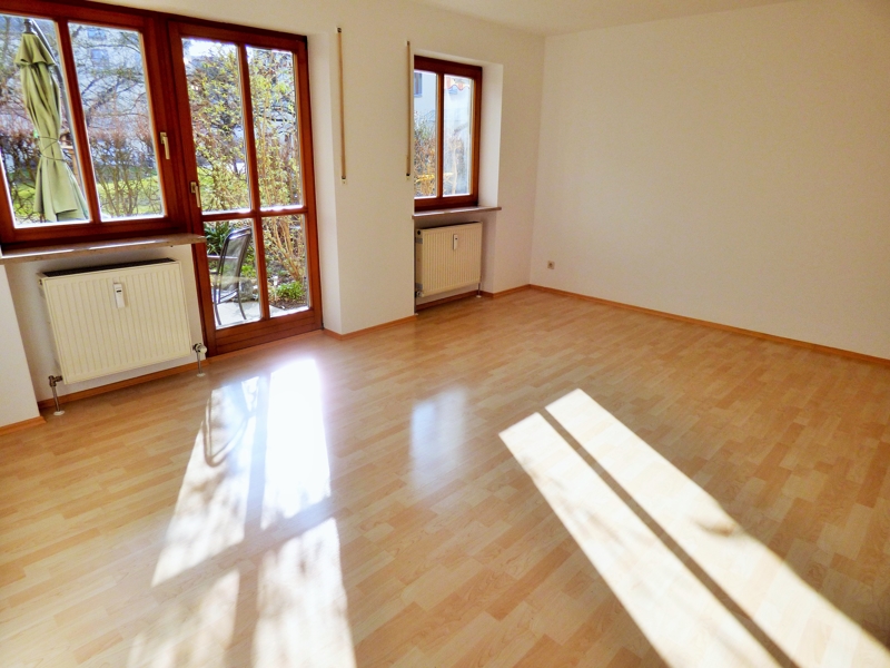 Geradewegs gelangen Sie in Ihren großzügig dimensionierten Wohnbereich – mit nischenhaftem Schlafbereich – der Sie zum einen über Ihre nach Süden ausgerichtete Terrasse in Ihren kleinen Garten führt.