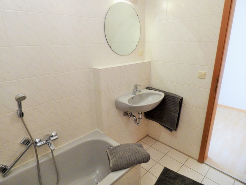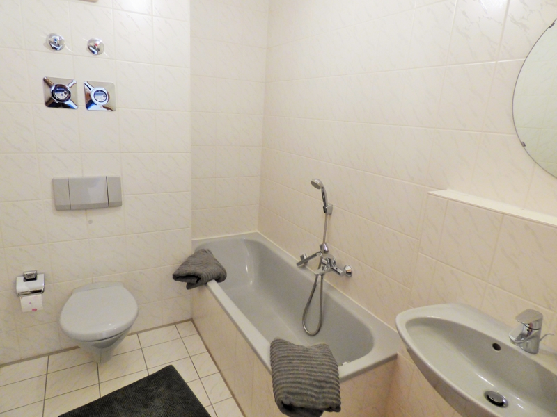Ihr Bad - mit einer Wanne versehen - präsentiert sich Ihnen bodenseits wie raumhoch weiss gefliest.