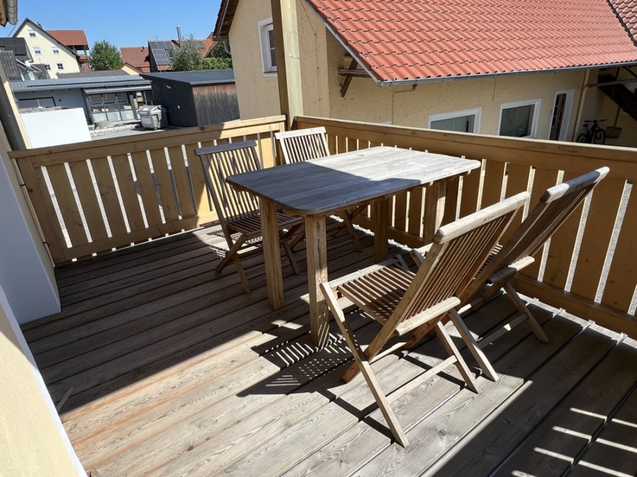 Ihren morgendlichen Kaffe oder Tee genießen Sie auf dem großen Balkon der von der Küche aus erreichbar ist.