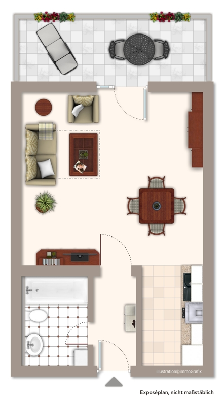 Ihre Wohnung liegt ruhig in einer parallel zur Donau verlaufenden Straße, mit Blick von Ihrem Balkon gen Westen auch bis auf die Winzerer Höhen.