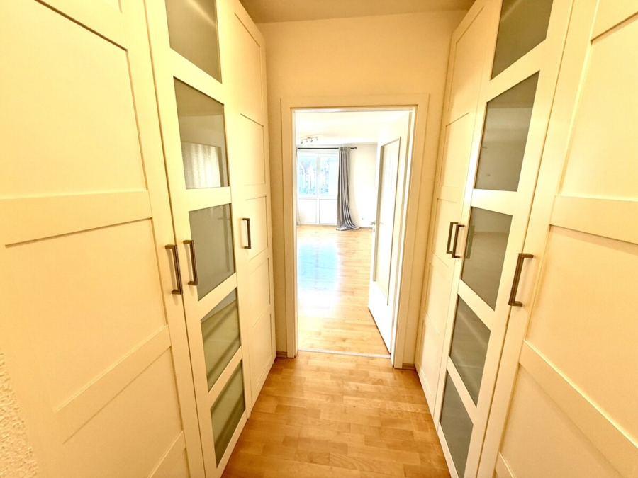 In Ihrer Diele stehen schon Garderobe und Schrank.