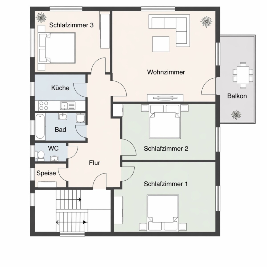 - Balkon zugänglich vom Wohnzimmer