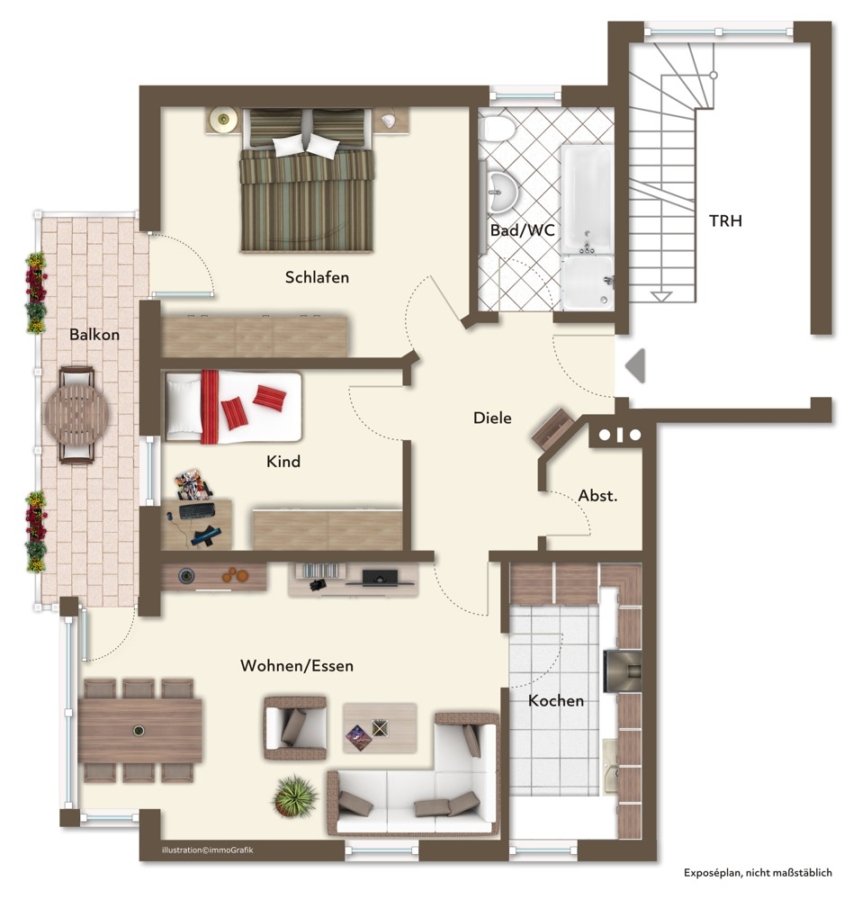 Die Wohnung zeichnet sich durch eine ruhige und doch zentrale Lage aus.